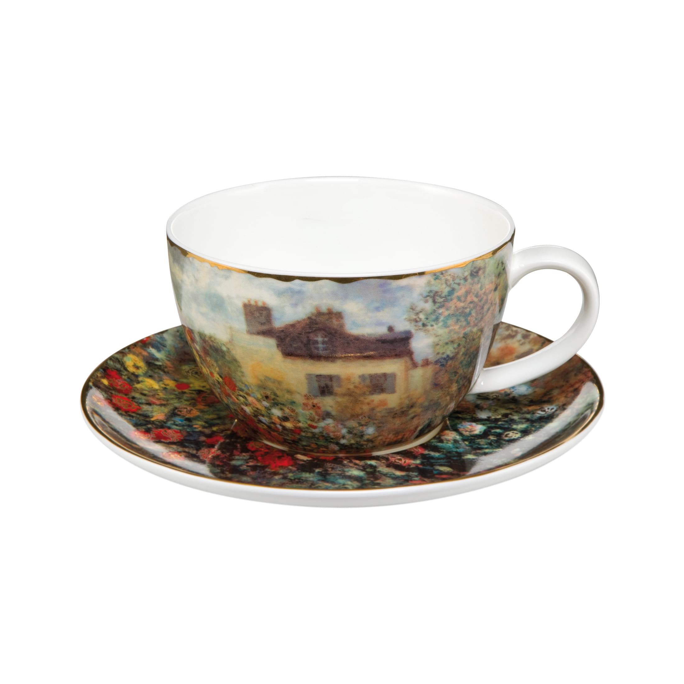 Der blühende Garten des Künstlerhauses in Giverny — Claude Monet verwandelte ihn in sein persönliches Gesamtkunstwerk, das ihn zu unzähligen Gemälden inspirierte. Farbenprächtige Harmonie und impressionistische Lebensfreude, festgehalten auf einer eleganten Cappuccinotasse aus feinem Fine Bone China mit aufwendiger Echtgoldauflage. Um die Brillanz der Farben und die Goldauflage zu schonen, ist Spülen per Hand mit mildem Reinigungsmittel empfehlenswert. Fassungsvermögen: 250 ml. Lieferung inklusive Geschenkverpackung.