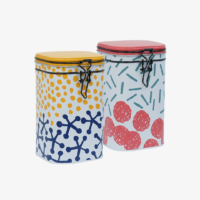Die verspielten und farbenfrohen Muster der neuen Serie „Potato Print“ ziert dieses Dosen-Set.